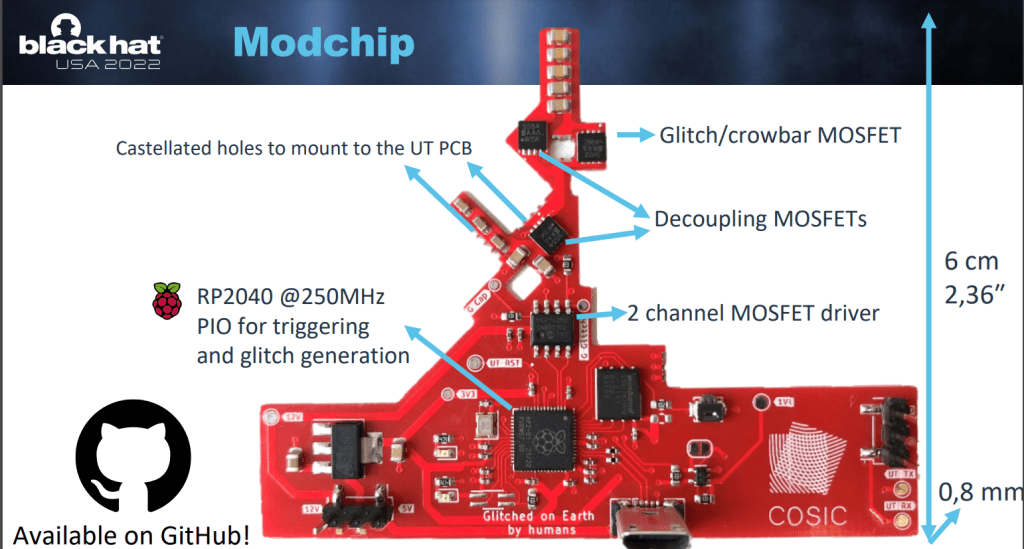 Using a custom made modchip, he was able to implement a fault inject that bypassed the bootloader to install custom firmware. From there, he had root access to the terminal and could perform some functions such as beamforming and probing other parts of the Starlink network.