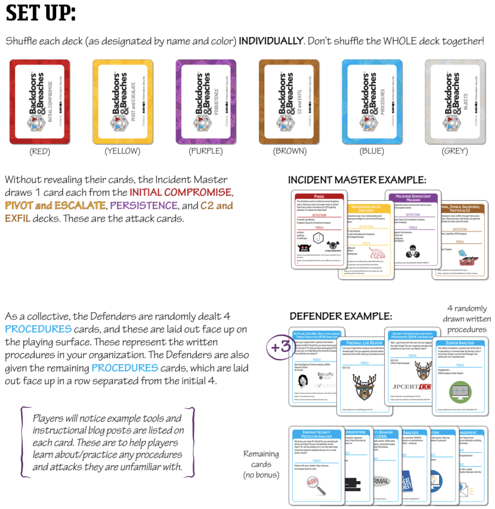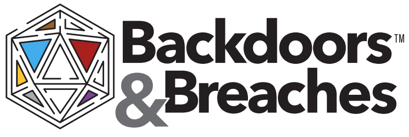 An Incident Response Card Game, from Black Hills Information Security and Active Countermeasures. Backdoors & Breaches contains 52 unique cards to help you conduct incident response tabletop exercises and learn attack tactics, tools, and methods.