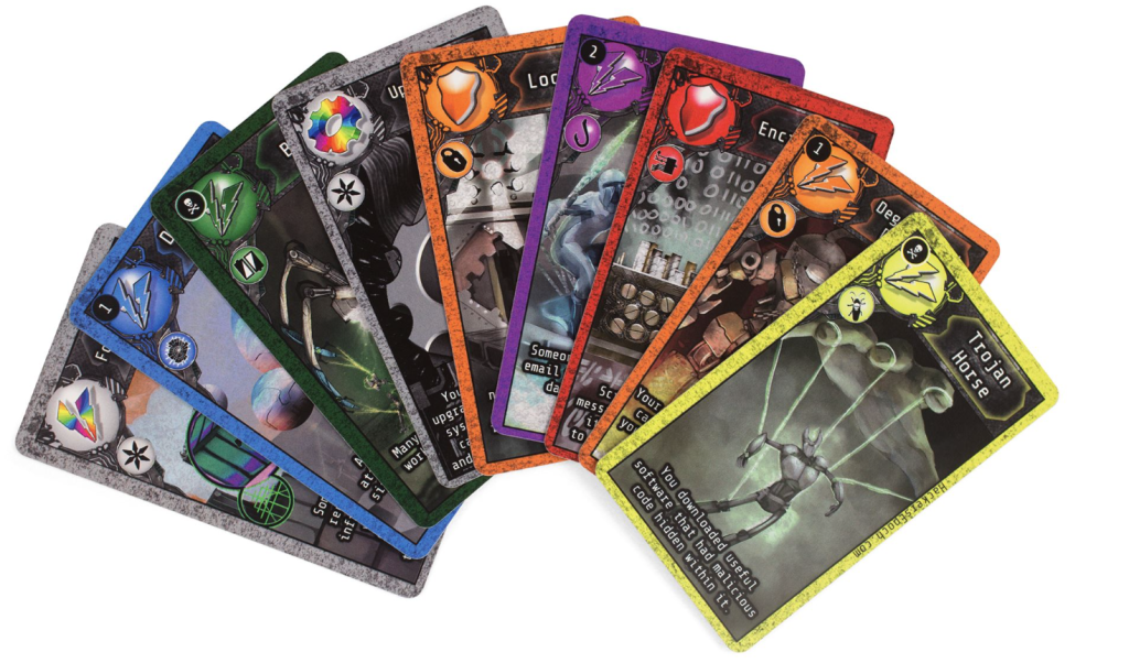 Hackers \’ Epoch Cybersecurity Card Game is a tool for teaching students many of the terms associated with threats and vulnerabilities within the scope of Cybersecurity. These cards gamify some aspects of cybersecurity training and provide the educator with a starting point for the discussion of cybersecurity principles with students. As students play the game, they use the cards to build their own network infrastructure and defend it, while attempting to Deceive, Disrupt, Deny, Degrade, or Destroy systems and services belonging to other players. The goal is to add as many systems as possible to one’s own infrastructure before the game ends.