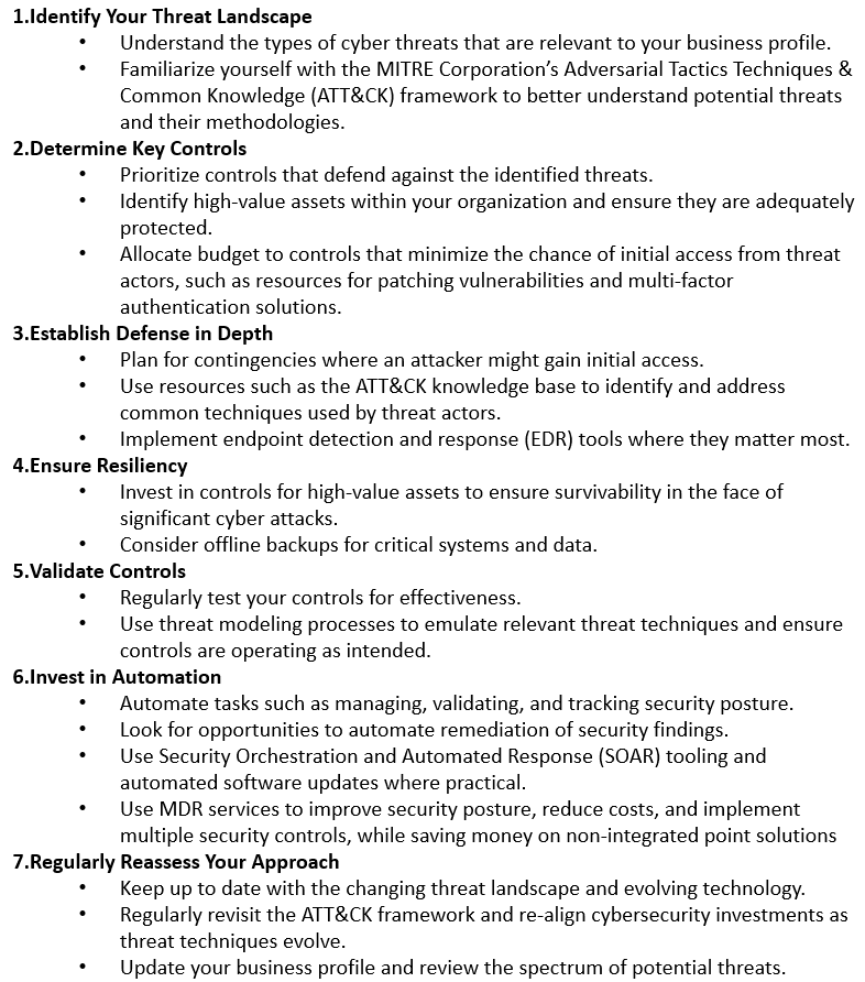 With a constrained budget, focusing your cybersecurity investment becomes even more critical. Using authoritative security frameworks, understanding the nature of potential threats, utilizing automation and 3rd party MDR services when possible, can significantly improve your security posture. Your cybersecurity strategy should be adaptive and resilient, ready to respond to the ever-changing threat landscape.