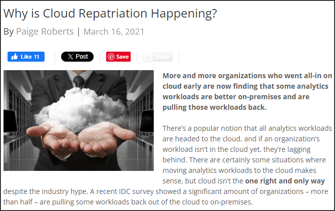Cloud vs. On-Prem Strategies: Insights into the ongoing debate between cloud-first strategies and the repatriation of workloads, especially with the rise of generative AI.
